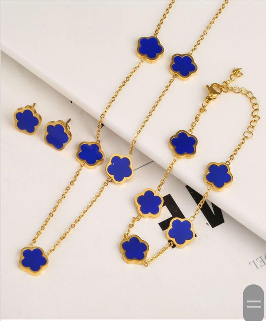 ASONSTEEL Fashion Flower Necklace Earrings Bracelet Jewelry Sets For Women Stainless Steel Shell Clover Accessories Vintage Gift