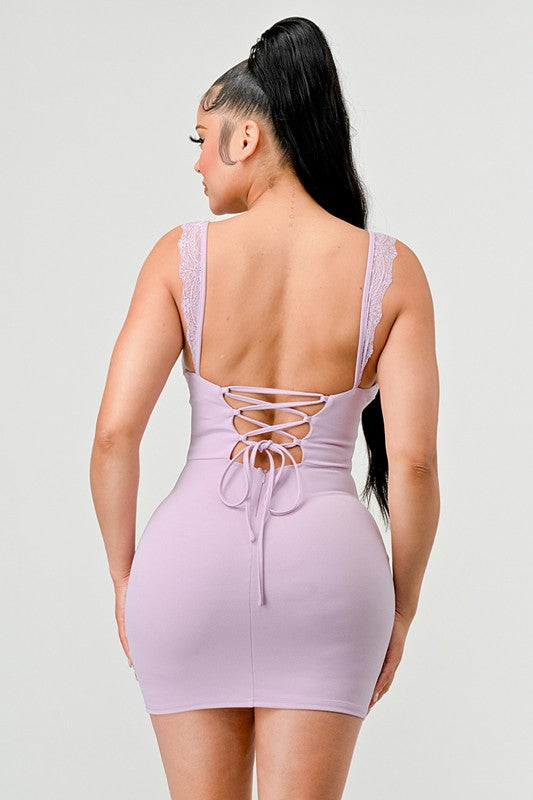 LUX LACE FLUTTER SLEEVES CONTRAST BODYCON DRESS
