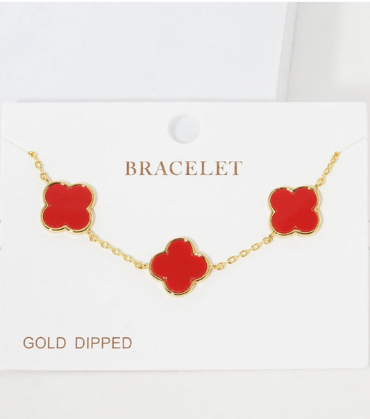Gold Dipped Quatrefoil Charm Link Bracelet