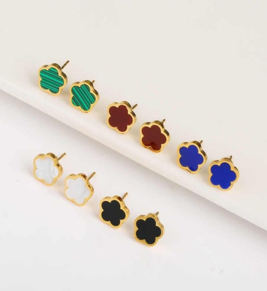 "5-Leaf Lucky Flowers Earring" color green, black, red, purple, write very charming