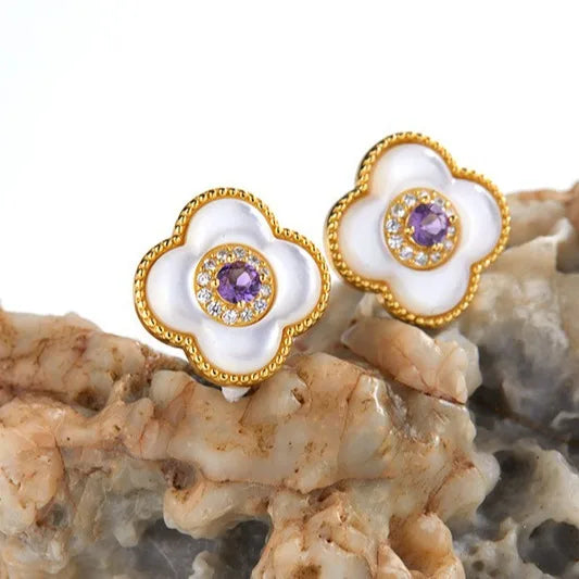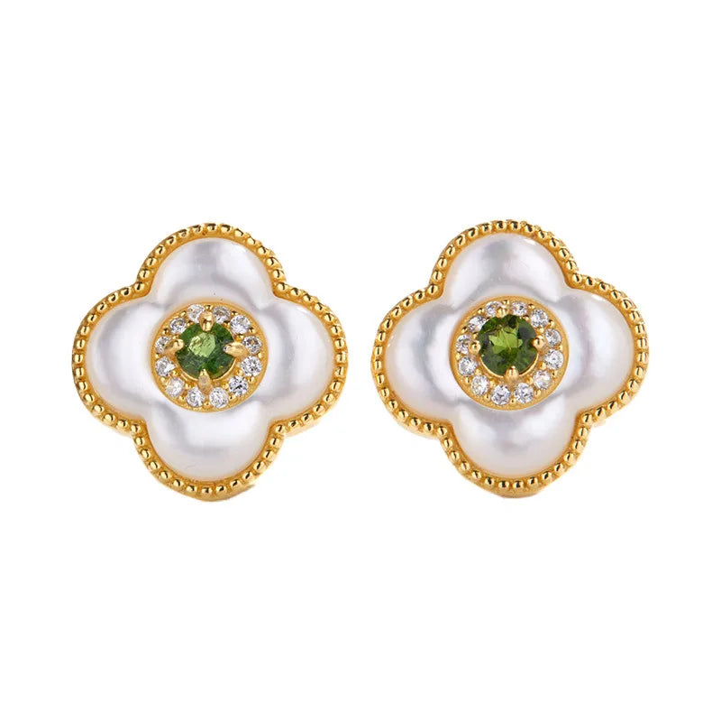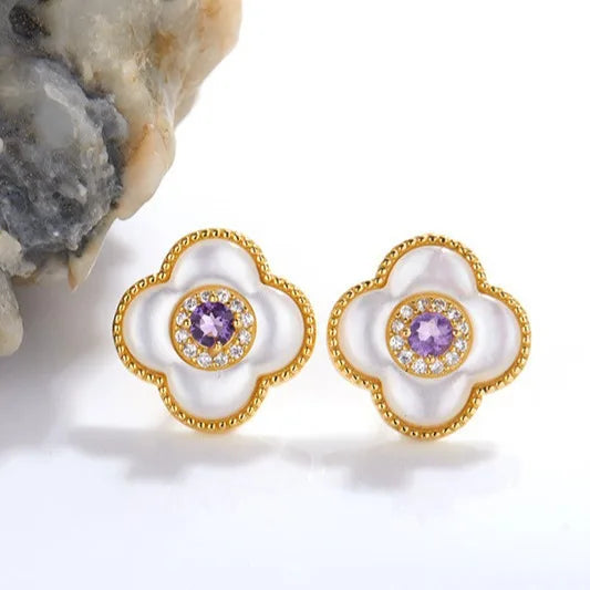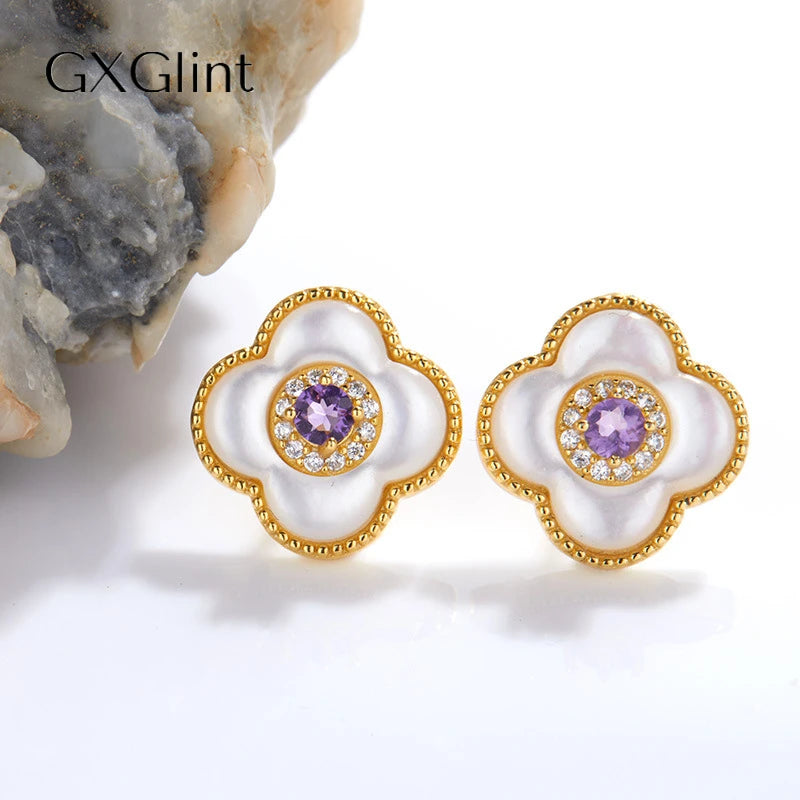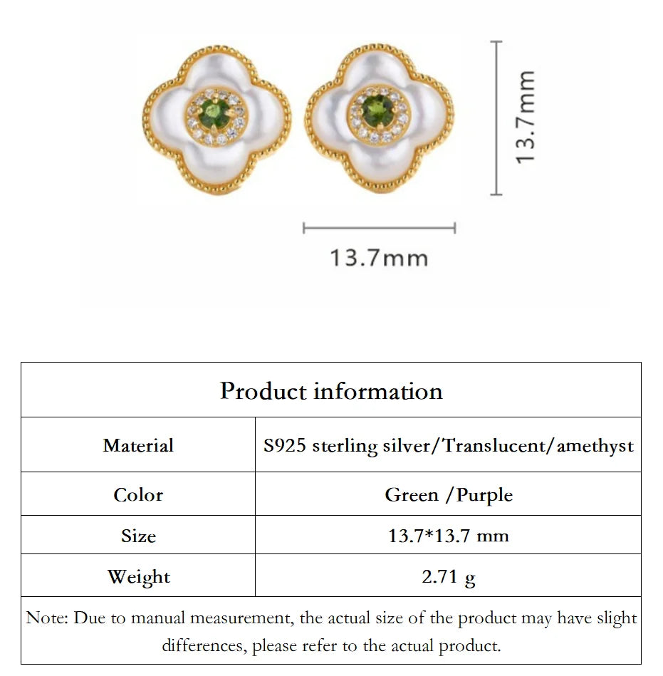 GXGlint 925 Sterling Silver Colorful Four Leaf Clover Earrings with Natural Opal and Translucent Stone Earrings for Women