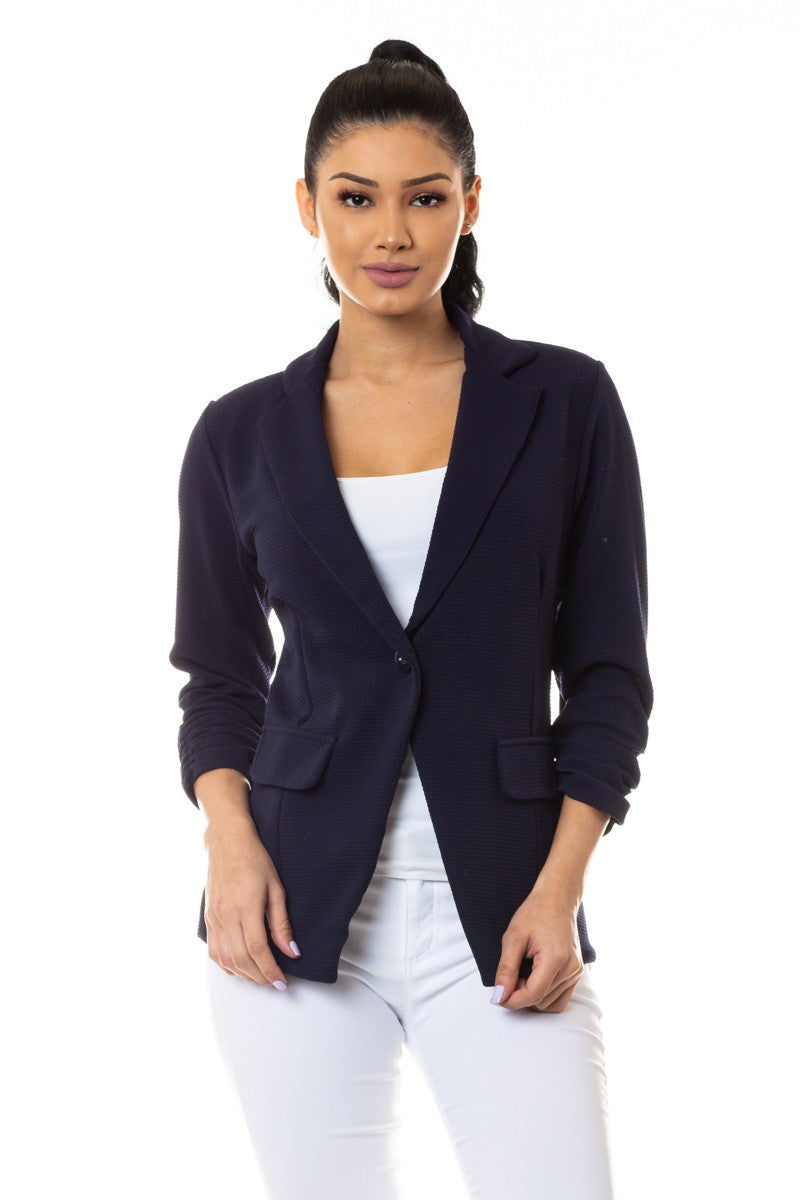 Lydia Textured Blazer Jacket (96% Polyester 4% Spandex) Made in Vietnam