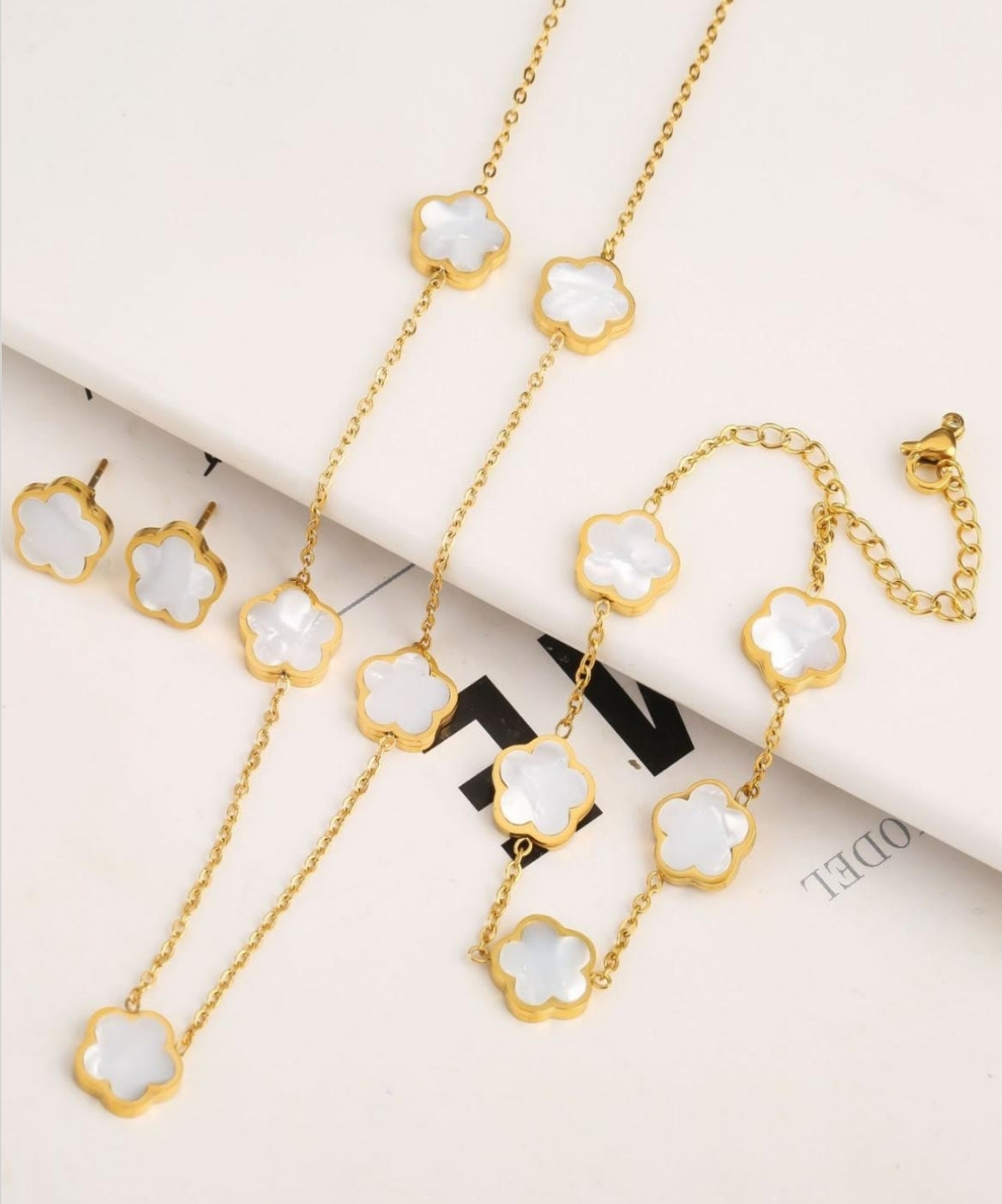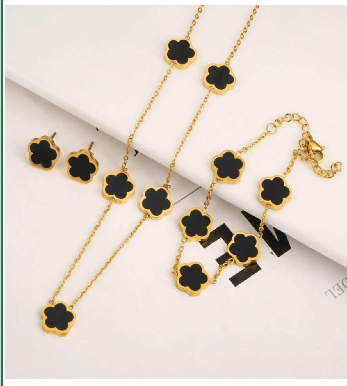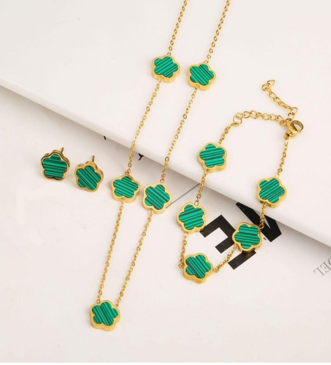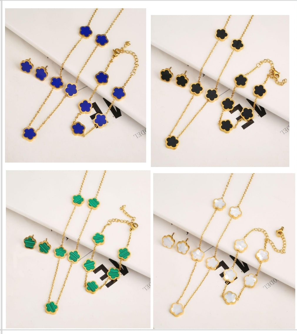 "5-Leaf Lucky Flowers Jewelry Suit Set,5 Flowers Necklace,5 Flowers Bracelet,Flowers Earring,"