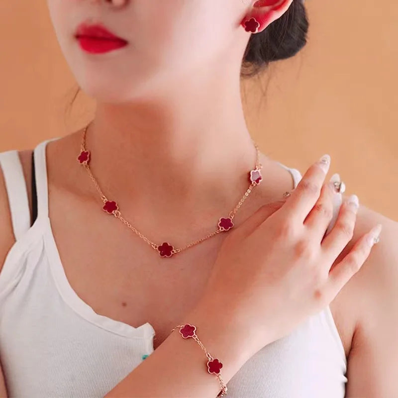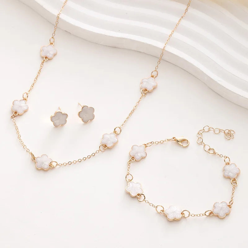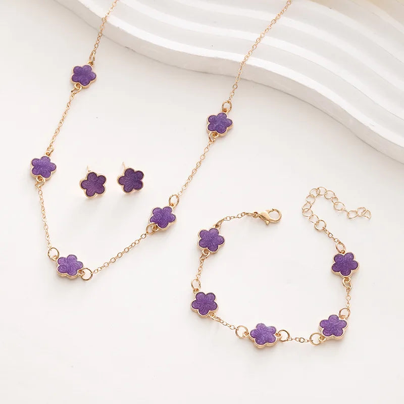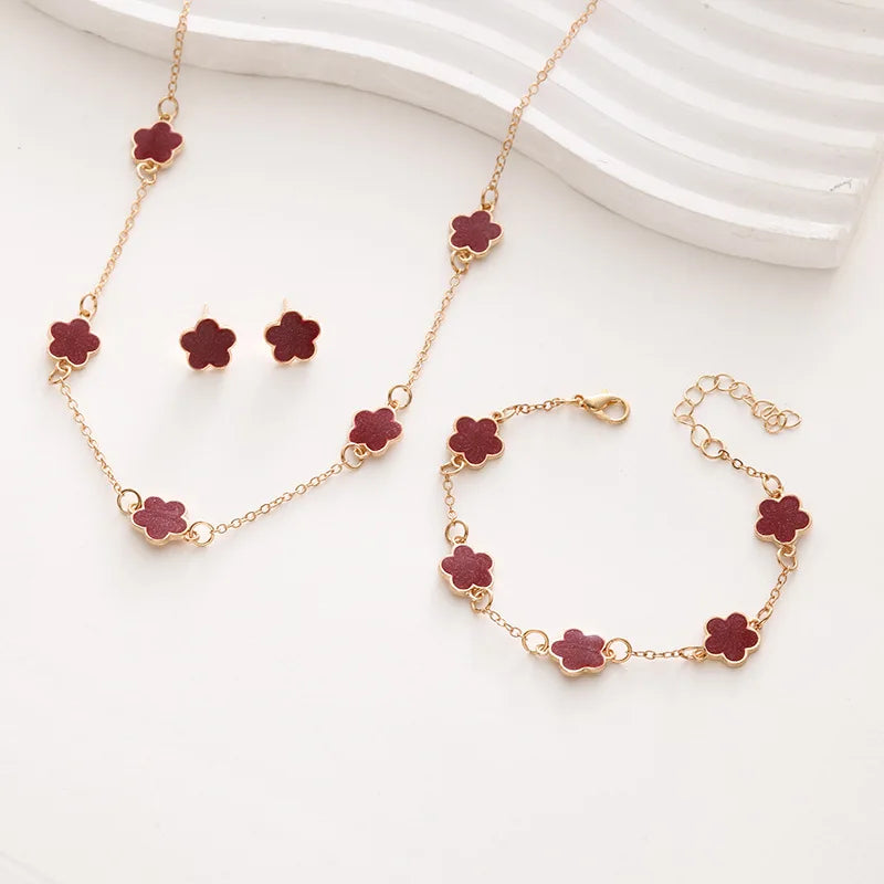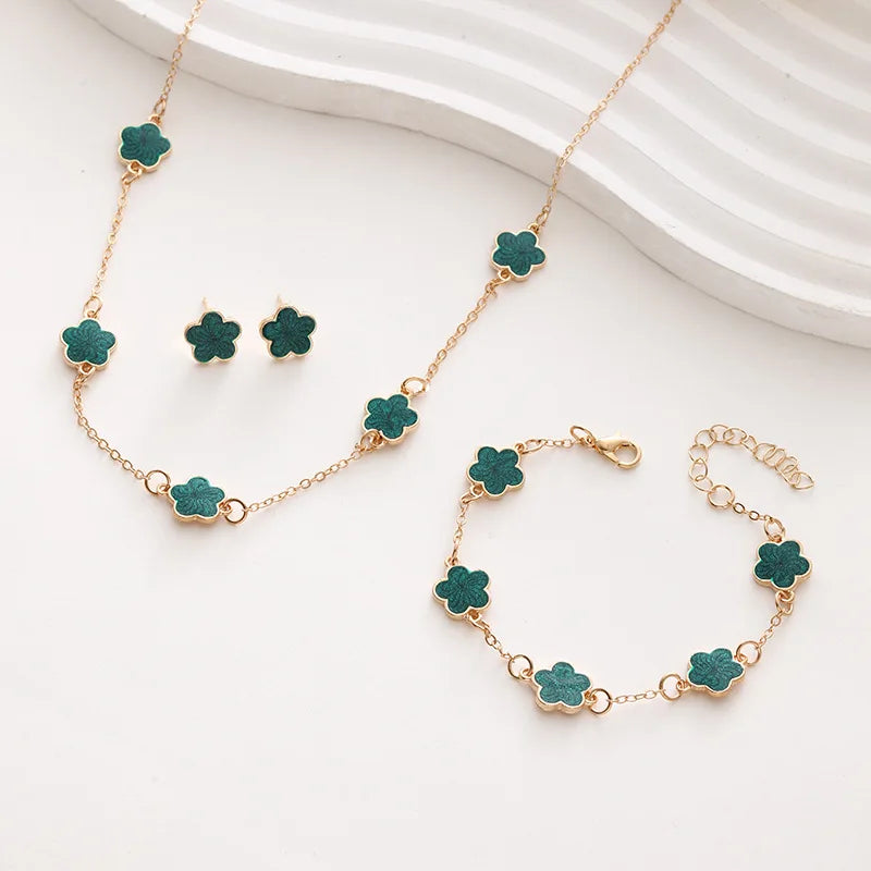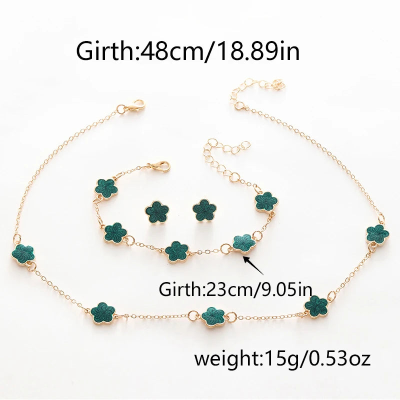 3 PCS Light Luxury Flower Bracelet Sets for Women Fashion Lucky Five-leaf Clover Earrings Necklace Friendship Party Jewelry