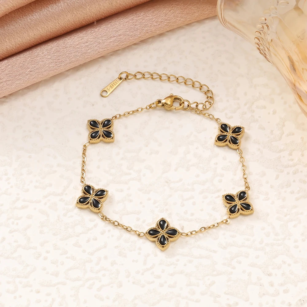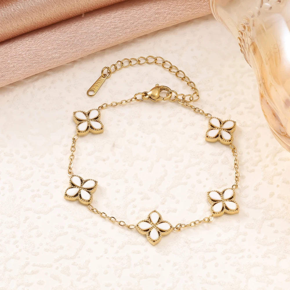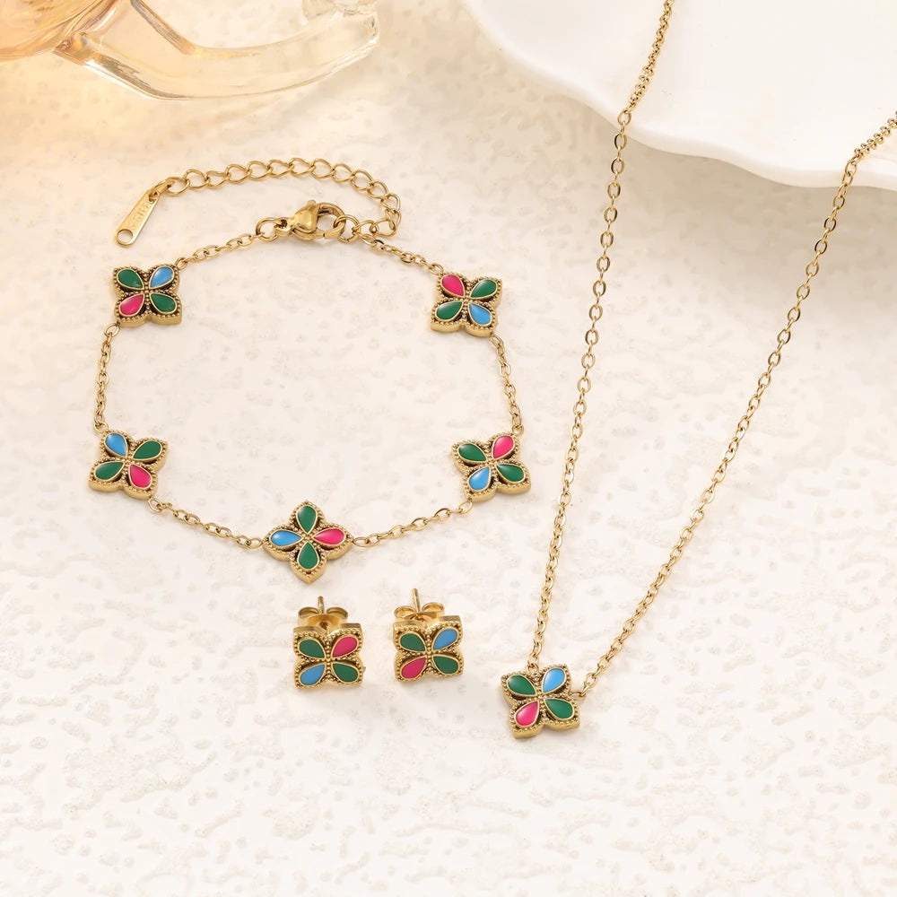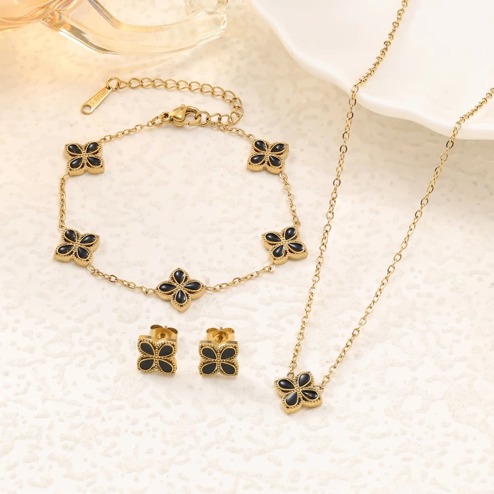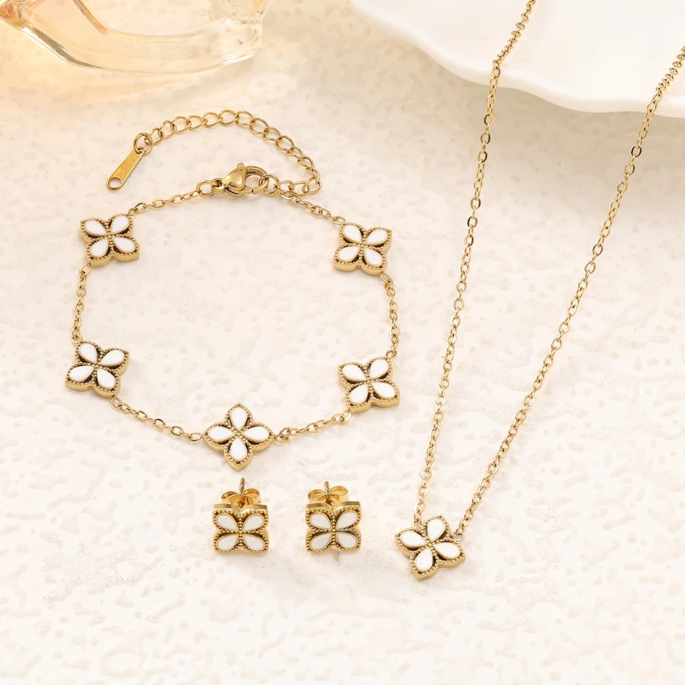 4pc fashion trend high-end feeling clover necklace earrings bracelet women's versatile flower jewelry set