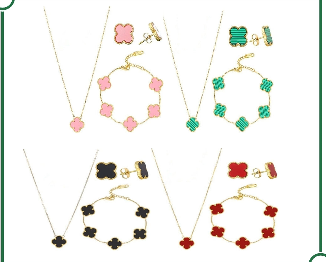 "Clover Jewelry Suit Set 1 Clover Necklace,5 Clover Bracelet,1 Clover Earring,Double Color Side "