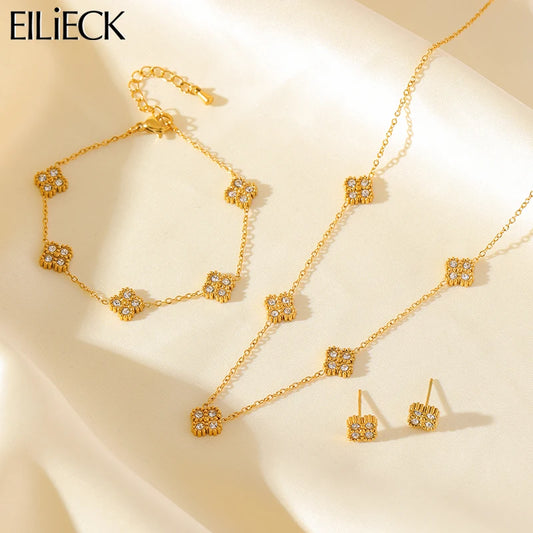 EILIECK 316L Stainless Steel Leaf Clover Zircon Necklace Earrings Bracelet Set For Women New Fashion Waterproof Jewellery Gift