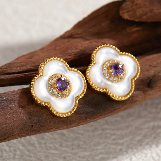 GXGlint 925 Sterling Silver Colorful Four Leaf Clover Earrings with Natural Opal and Translucent Stone Earrings for Women