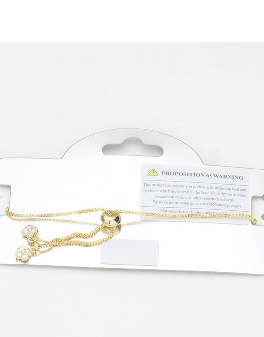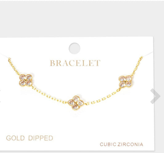 Color  Gold Dipped CZ Triple Quatrefoil Charm Station Bracelet