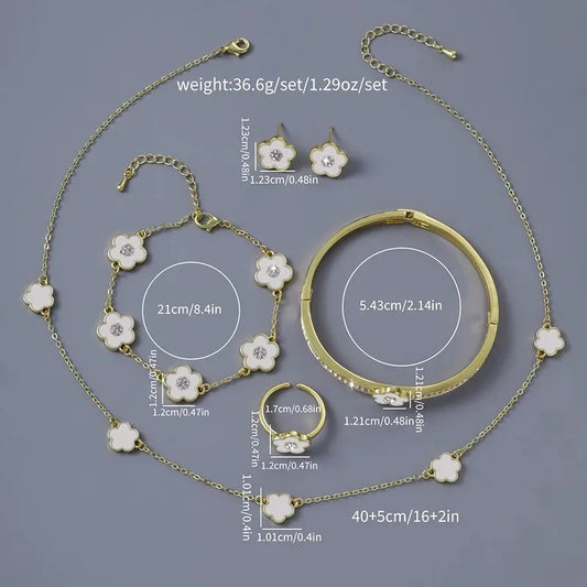 4Pcs High Quality Five Leaf Flower Botanical Jewelry Set Bracelet Necklace Earrings Bnagles Classic for Women Jewelry Clover