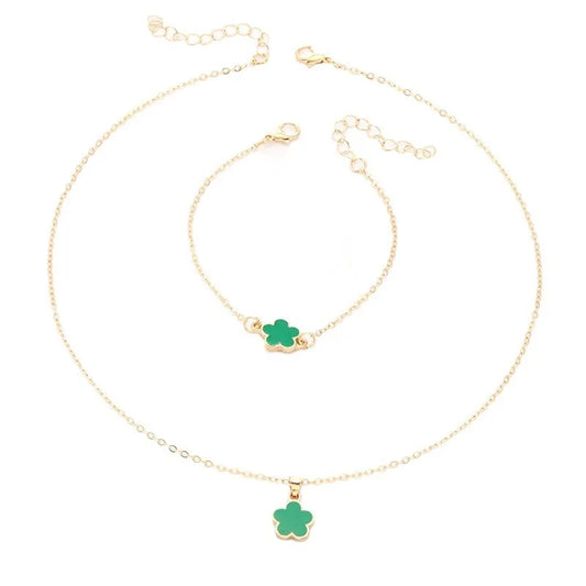 Lucky Five-petal Flower Five-leaf Clover Bracelet Earrings Necklace Three-piece set for woman Stylish Accessories Party Jewelry